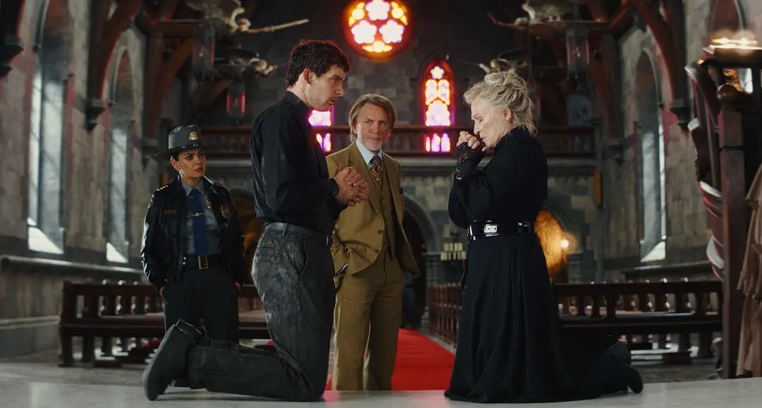 我觉得,和第一部一样,本片的侦探并非真正的主角。侦探 Blanc 更像是推动真相浮出水面的催化剂,导演真正想刻画的,始终是那些身份普通,被结构性力量裹挟,但仍尝试做出道德选择的“小人物”。在第三部中,这一点集中体现在 Jud 身上。(我觉得这一点处理地非常好,但是网上有人觉得这样的处理就让影片不像是那种阿加莎笔下的波洛或者是柯南道尔笔下的福尔摩斯,本格推理的感觉就少了很多。)导演把 Jud 塑造的形象非常完整,完全配得上他神父的身份(之前看过的很多电影中,神父都是“邪恶”的角色)。